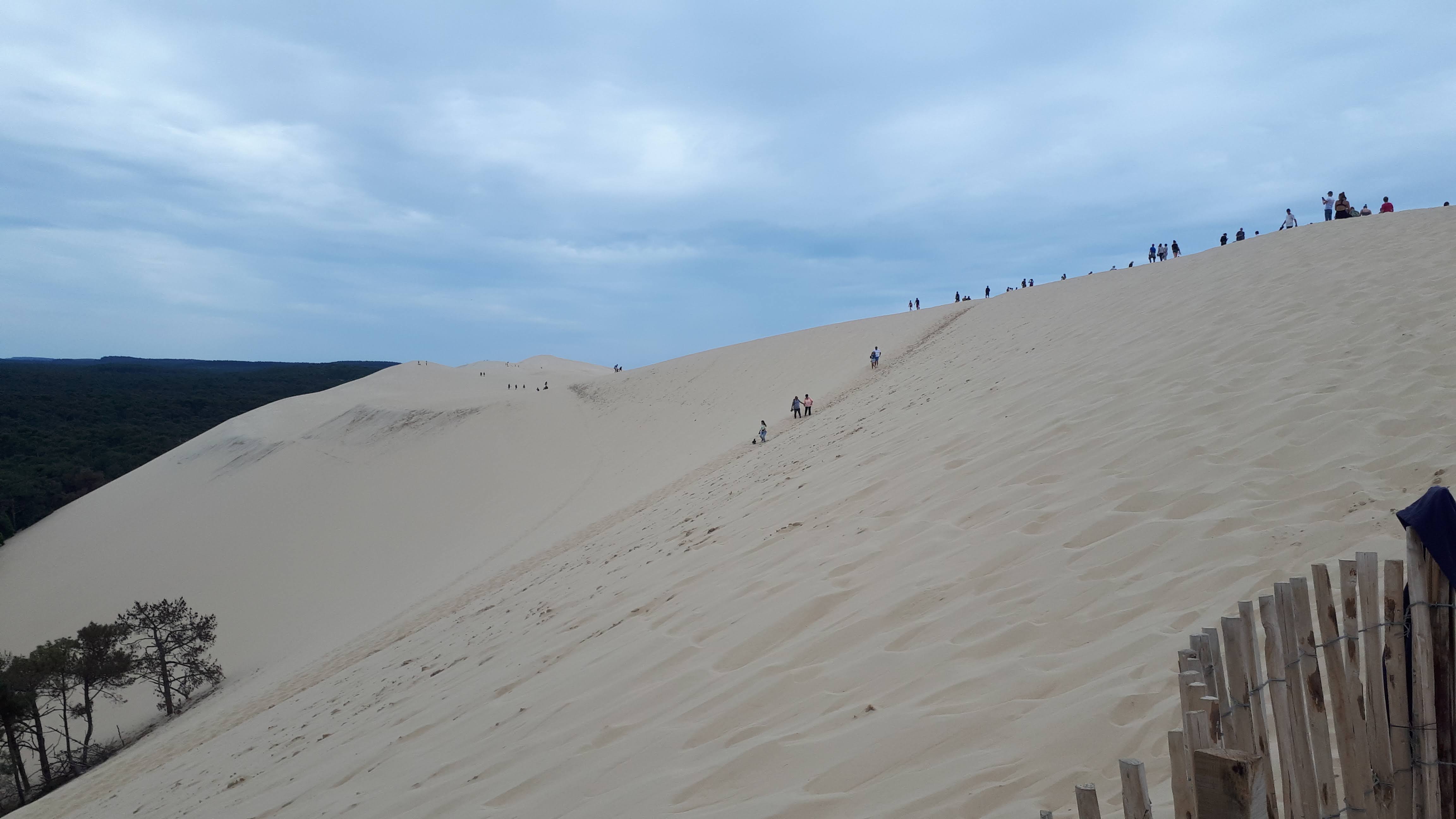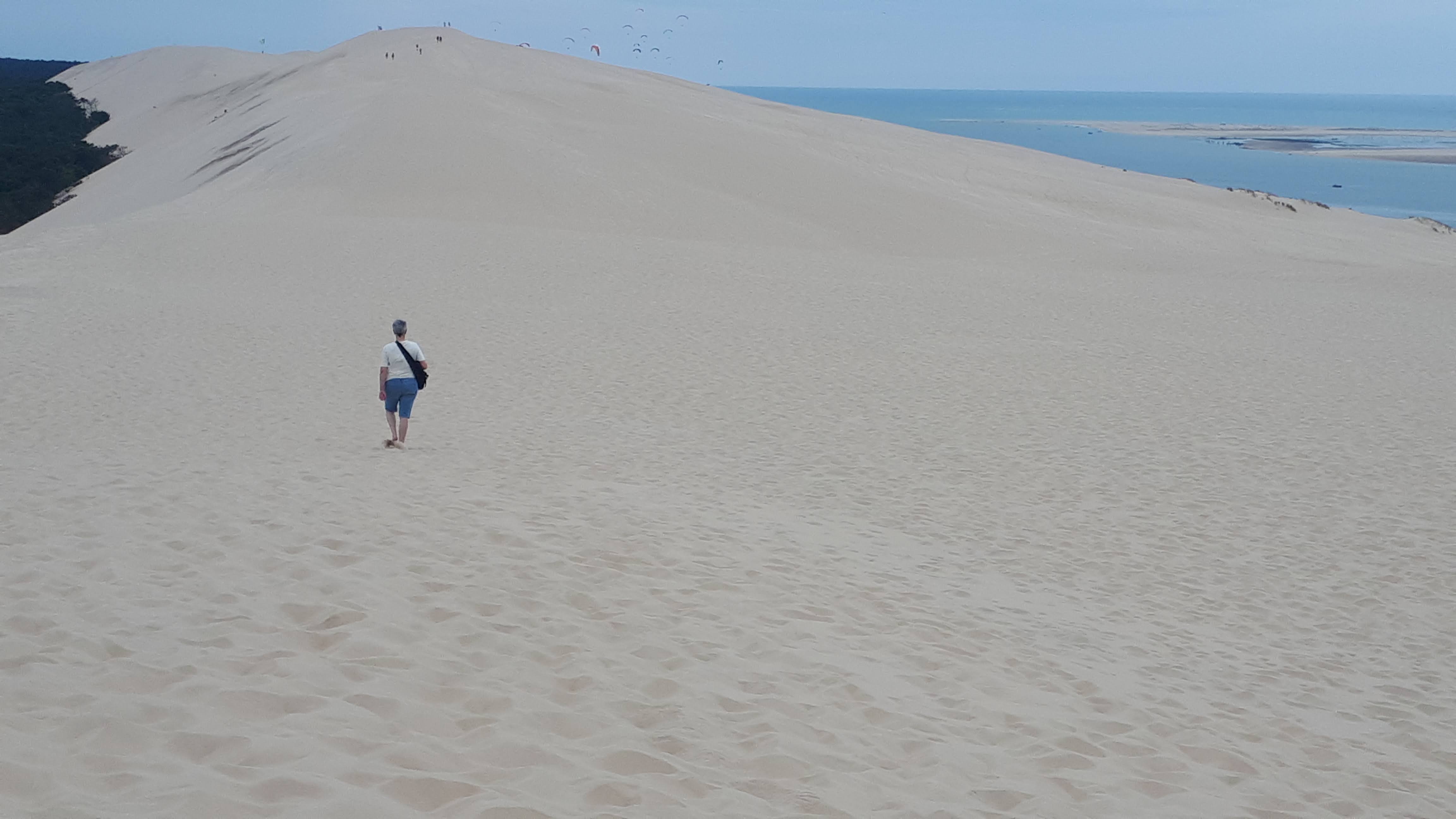 Het is een berg zei men, geen duin. Ik dacht dat het overdreven was. Tot ik deze prachtige duin zag liggen en toen pas besefte ik hoe hoog deze is. De duin is zo een 106 meter hoog en bevat zo een 60 miljoen kubieke meter zand. Beseft iemand wel wat een hoop zand dat is. Nee dus … ik ook niet tot ik begon te klauteren.