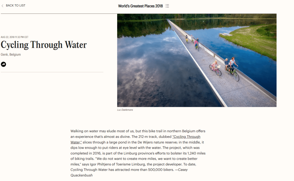 Een unieke fietsbeleving in Limburg? Zo uniek dat het door het Amerikaanse weekblad TIME in 2018 als een van ’s werelds meest fantastische plaatsen werd aanbevolen, en de enige plaats in België op deze lijst.